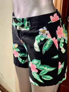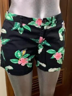 Shorts de tela, color negro estampado multicolor, talla 6, marca Old Navy. En perfecto estado. Medidas: Cintura 41cm, ancho de cadera 48 cm, largo 32cm