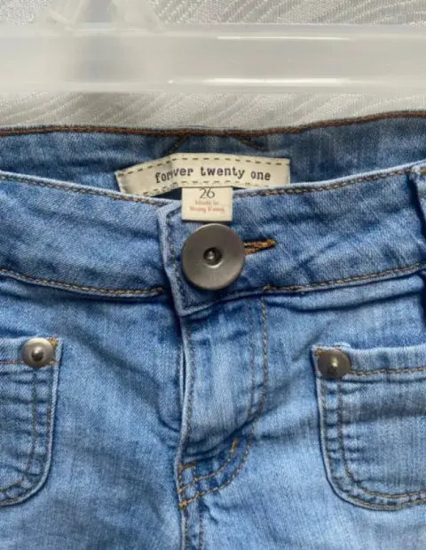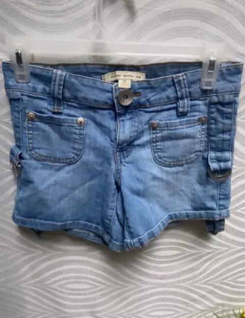 Shorts Denim claro Úselo de 2 maneras. Shorts Denim claro Úselo de 2 maneras; corto o muy corto. Bolsillos delanteros y traseros tipo cartera, pantalones cortos de tiro bajo. Argollas laterales para subir el pantalón. Talla: S (26-28) Marca: FOREVER 21.
