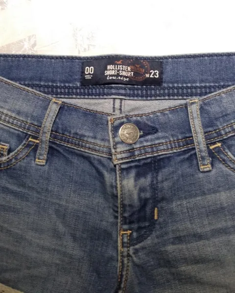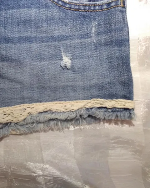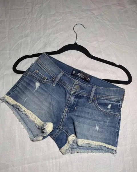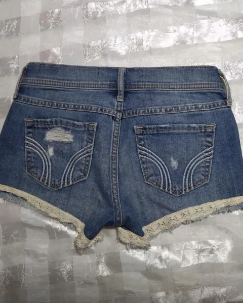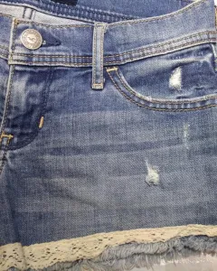 Shorts demin HOLLISTER, con aplicación de encaje en piernas. low rise, diseño desgarrado.Nuevo sin etiqueta