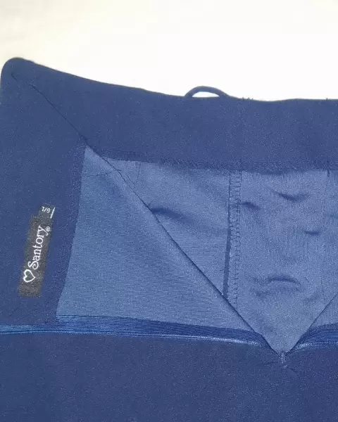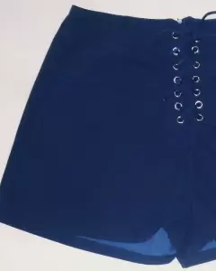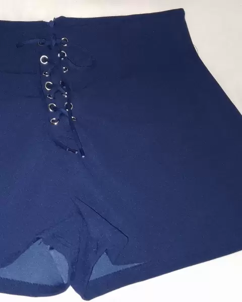 Shorts de tela con cierre en la parte de atrás y con una cuerdita de accesorio en la parte de adelante, lo cual no permite ver hacia el interior ya que lo cubre con la misma tela