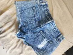 Mini shorts de mezclilla, de dama, color mezclilla jaspeado, talla XS, marca Forever 21, en buenas condiciones.