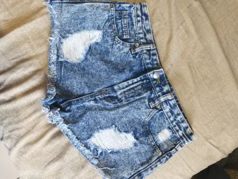 Shorts mezclilla. Mini shorts de mezclilla, de dama, color mezclilla jaspeado, talla XS, marca Forever 21, en buenas condiciones.