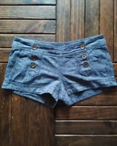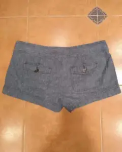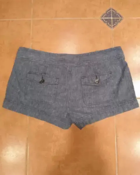 Shorts tiro bajo Express⚠️2❌300⚠️. Lindo short de material de lino y algodón, es suavecito y ligero, da el efecto de mezclilla, sin stretch, tiene botonadura de metal en color gris humo, con bolsitas enfrente y atrás*Talla 6*Medidas: Cintura 33cm. Tiro 27cm*Calificación:10**GRACIAS POR TU PREFERENCIA*