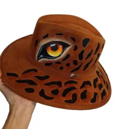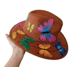 Sombrero de Gamuza pintados a mano. Sombrero talla M de gamuza pintados a mano, diferentes diseños. Abarca 57, 58 centímetros de diámetro. Tenemos el complemento para verte única.
