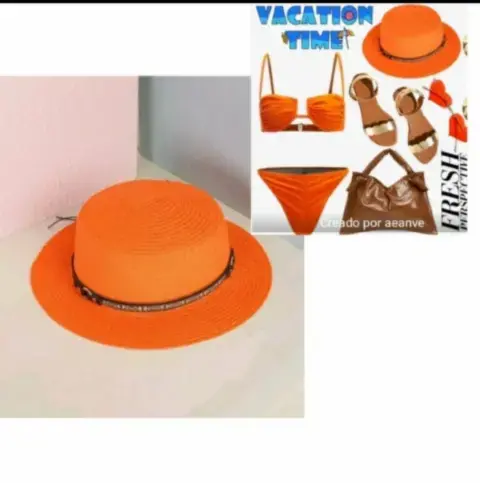 Sombrero de Shein. Lindo sombrero color naranja de la marca SHEIN, NUEVO, Medidas 57 cm corona. Y se puede llevar en la maleta sin problema, si se arruga solo le pasas con una secadora o plancha y listo.❣️PRECIO NO NEGOCIABLE, ULTIMO PRECIO🚫....... NO BLOQUEES si no estas segura de tu compra.♻️ Se envia con material reciclado