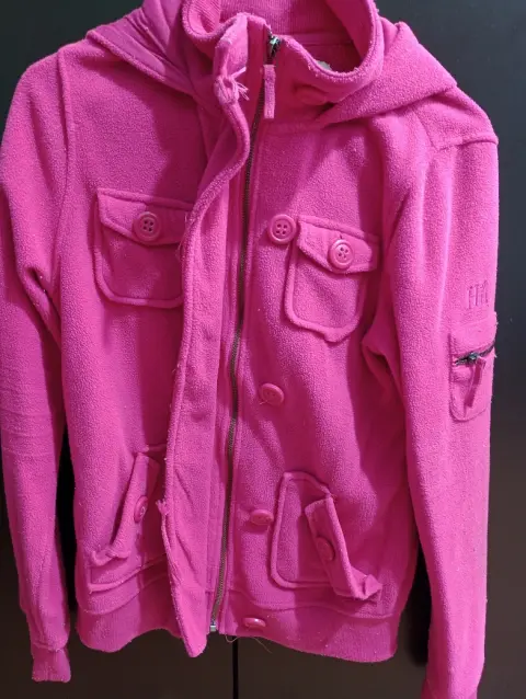 Chamarra rosa con capucha HOLLYLAND. ✨donde van abrochados los botones está descosido pero cierra bien la prenda✨Usado✨Talla M (queda a S o XS)✨incluye bolsillos📏 Medidas: 56 cm (ancho hombro a hombro) X 72cm de largoPecho: 48cmMangas: 73 cm largox11 ( ancho de muñecas)Envío inmediato. ☺️Recuerde que también puedo hacerle un paquete de los productos que más le hayan gustado de mi perfil y que desee comprar. 😸📦¡Gracias! ☀️