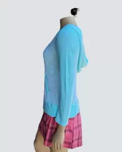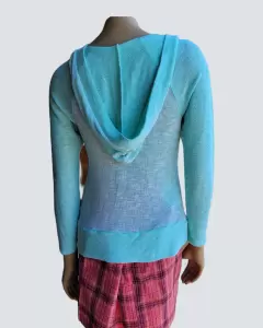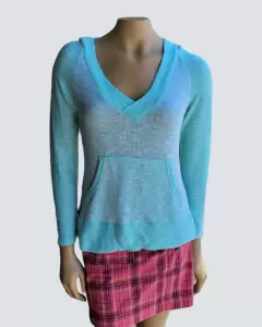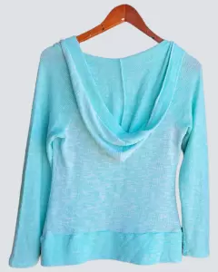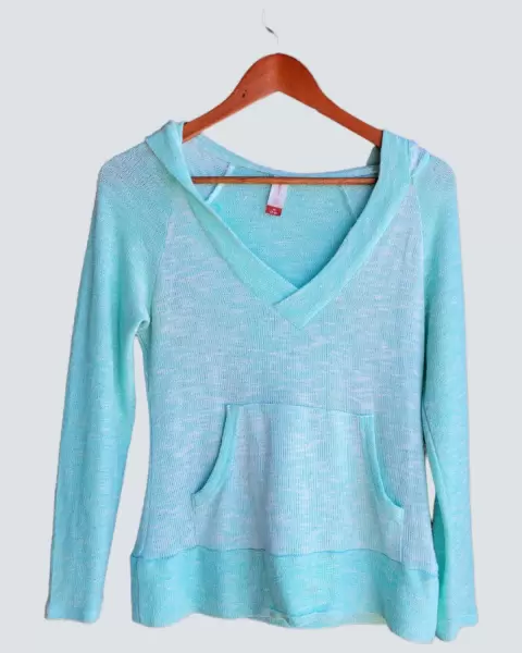 Sin límites Mujer joven Sudadera con capucha ligera, tamaño mediano, color verde aguamarina, manga larga, cuello en V, bolsillo inferior delantero, hoddie, hecha de mezcla de tela acrílica, previamente utilizada en buenas condiciones.