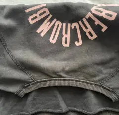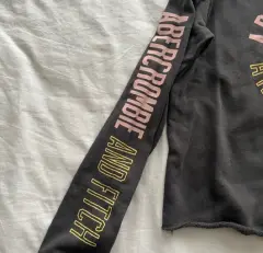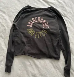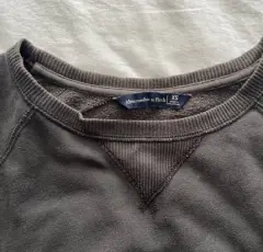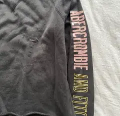 Pull-Over Abercrombie & Fitch gris, con logo en la espalda y en manga izquierda. Con pequeño desgaste en parte del cuello, como se muestra en la foto
