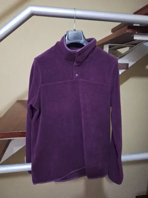 Sudadera. Sudadera suavesita y ligera,color morado, hace bonita figura de cuello alto con botones metálicos del color de la prenda. Luce de calidad composición 95%poliester 5% elastano. Queda bien talla 5 a la talla 8
