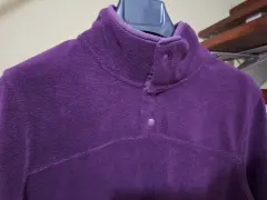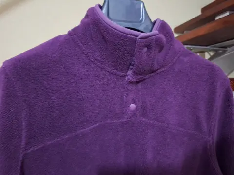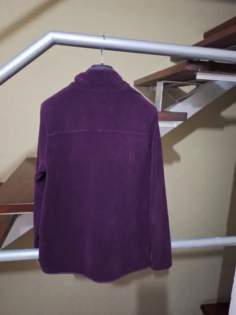 Sudadera suavesita y ligera,color morado, hace bonita figura de cuello alto con botones metálicos del color de la prenda. Luce de calidad composición 95%poliester 5% elastano. Queda bien talla 5 a la talla 8
