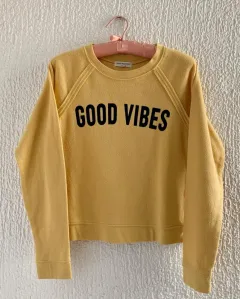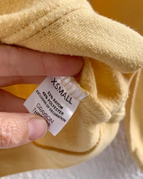 Sudadera amarilla ligera. Hermosa sudadera marca GRAYSON THREADS talla XS. Es color mostaza clarito, ligera pero calientita. Está nueva, jamas usada; solo la lavé, por eso no tiene etiquetas.