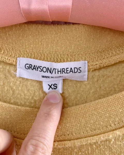 Hermosa sudadera marca GRAYSON THREADS talla XS. Es color mostaza clarito, ligera pero calientita. Está nueva, jamas usada; solo la lavé, por eso no tiene etiquetas.