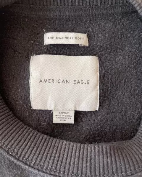 Sudadera American Eagle. Sudadera negra deslavada con rayas al frente. Talla: S, considero que es oversized. Medidas: 71 cm de hombros, 69 cm de axila y 56.5 cm de largo. Súper súper suave, cómoda.