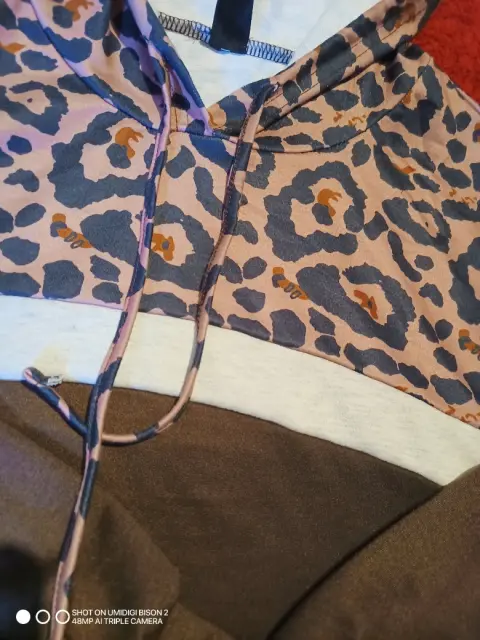 Sudadera animal print. Sudadera con capucha en tonos café y animal print. Nueva sin detalles.
