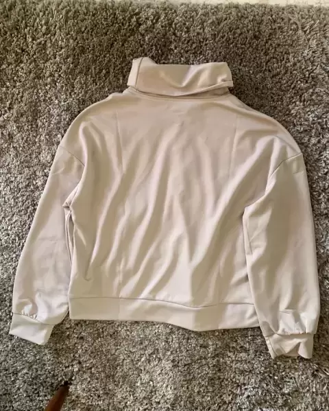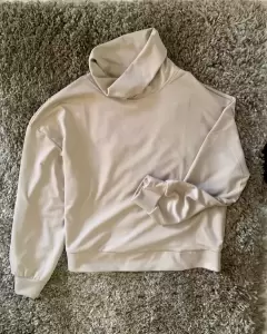Sudadera tela deportiva gruesa color beige, queda a la cadera y es estilo oversized. No transparenta y súper agusto, tiene cuello de tortuga.
