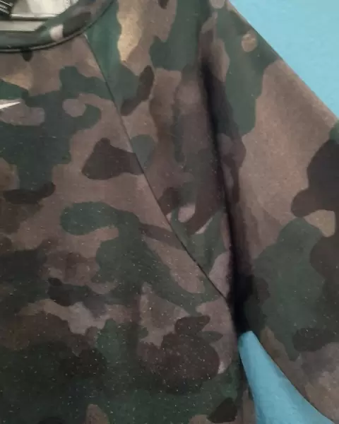 Sudadera corta camuflaje supercalientita y moderna nada roto ni decolorado solo presenta bolitas la tela por el uso es una prenda que aun tiene larga vida checar bien las fotos. Se va a un superprecio