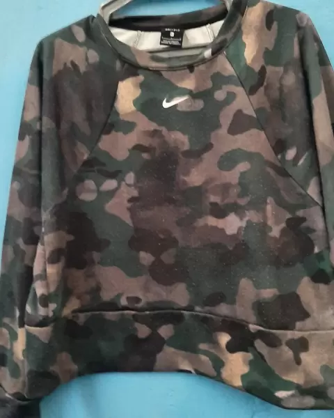Sudadera camuflaje nike. Sudadera corta camuflaje supercalientita y moderna nada roto ni decolorado solo presenta bolitas la tela por el uso es una prenda que aun tiene larga vida checar bien las fotos. Se va a un superprecio