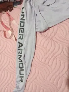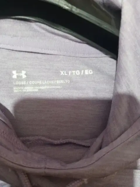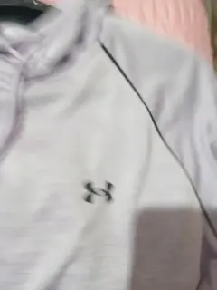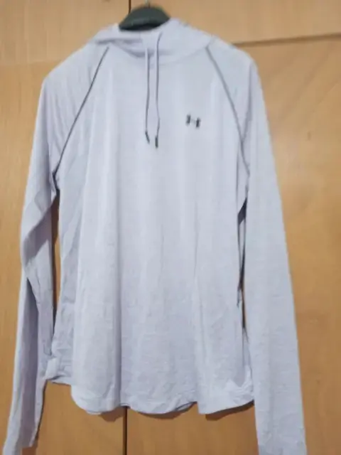 Sudadera de ejercicio color Lila con detalles en negro, con capucha de la marca Under Armour. Usada únicamente 3-5 veces.Ideal para hacer ejercicio al aire libre o taparse al salir del gym.Dice XL pero queda mejor a L