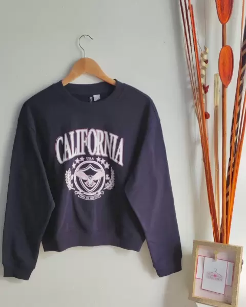 Hermosa sudadera color azul marino fabricado de algodón y poliéster con estampado en la parte de enfrente esta súper bonito.