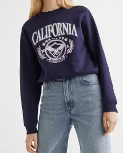 Sudadera con estampado de letras. Hermosa sudadera color azul marino fabricado de algodón y poliéster con estampado en la parte de enfrente esta súper bonito.