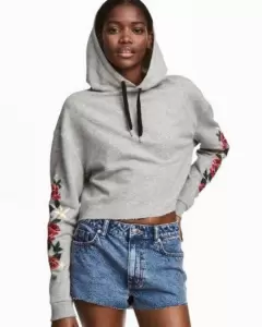 SUDADERA CORTA H&M. Hermosa sudadera con bordados en las mangas, talla s, en perfecto estado