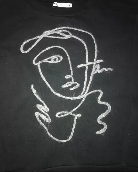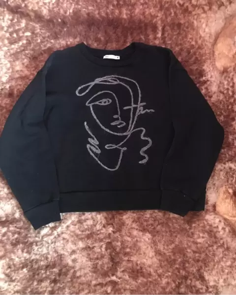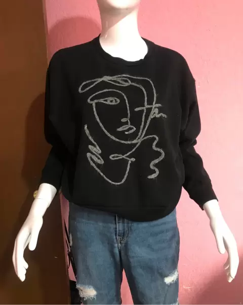 Sudadera cropped, es holgada, tiene un diseño al frente con estambre, muy en tendencia, ligera y combina con todo