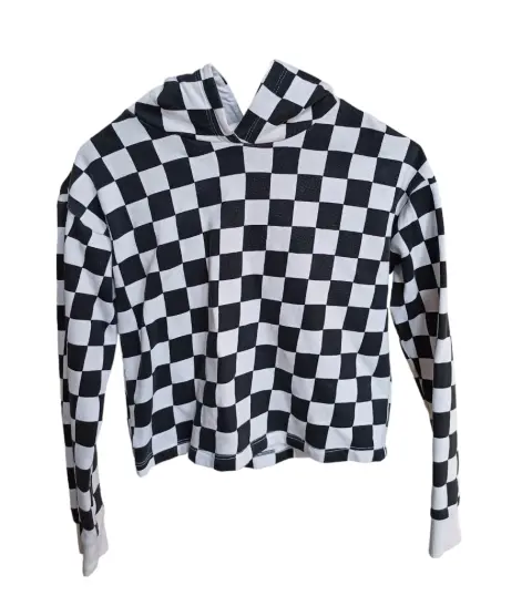 Sudadera corta cuadriculada, negro con blanco, con capucha, marca forever 21, talla chica (s), a estrenar sin etiqueta.