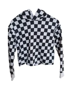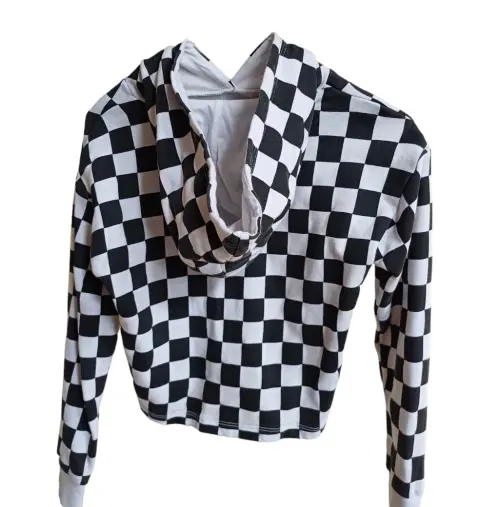 Sudadera Cuadriculada. Sudadera corta cuadriculada, negro con blanco, con capucha, marca forever 21, talla chica (s), a estrenar sin etiqueta.