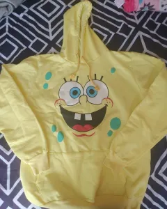 Sudadera de bob sponja. Esta nueva solo fue usada una vez esta calientita cuenta con gorro y una bolsa en frente es talla grande