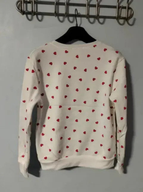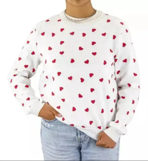 Sudadera blanca con corazones talla M-L con tela súper suave y calientita justo en esta temporada foto 1 se ve así puesta está muy tierna y linda 🥰👖👟🛍️🌷