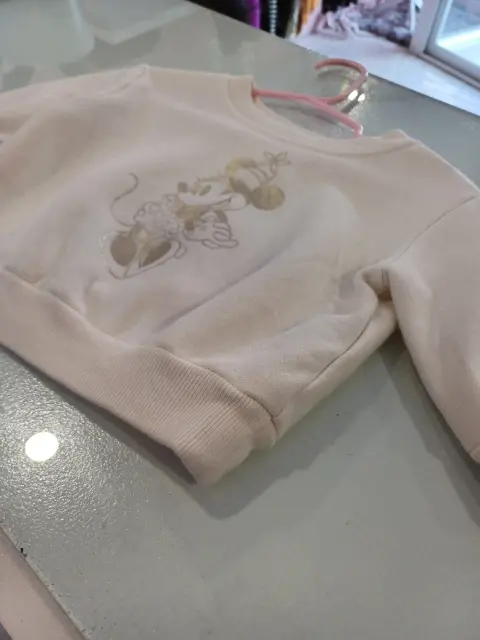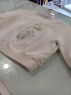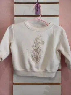 Hermosa sudadera color hueso con estampado de Minnie. Viene afelpadito de la parte de adentro, por lo que es muy suavecita y calientita.Es para beba de 3-6 meses