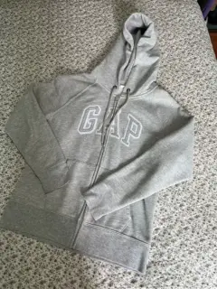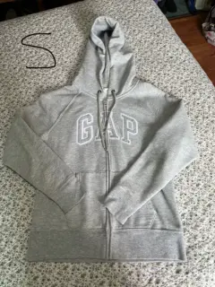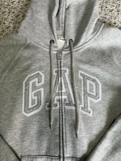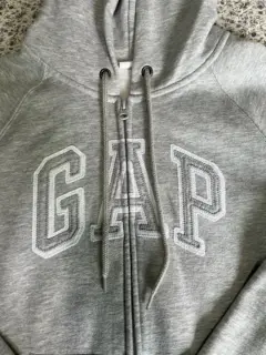 Chamarra GAP color gris claro con estampado en grande con las letras de la marca, la tela es muy suave además de que es combinable con todo.