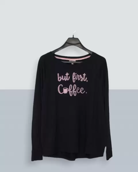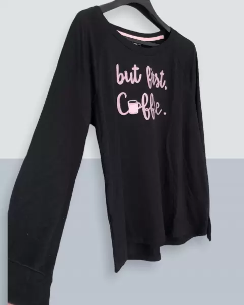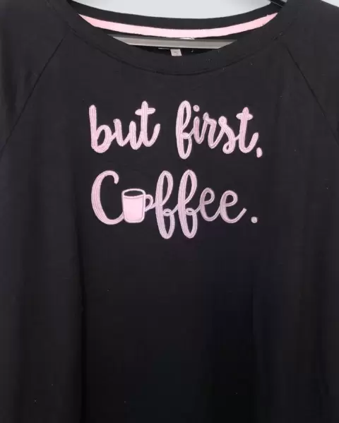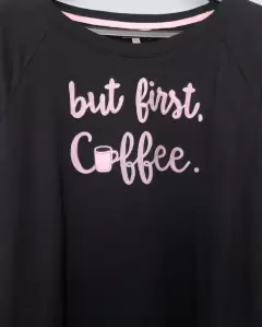 Pero primero el café. Esta bonita y ligera sudadera tiene un aspecto divertido y desenfadado que es perfecta para cualquier ocasión. Un diseño largo y holgado hace que sea fácil de llevar con cualquier cosa y el tejido es suave y ligero para que te sientas cómoda todo el día.