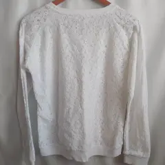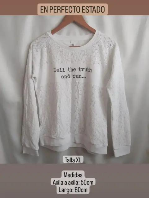 Sudadera jersey blanca encaje. Sudadera blanca de encaje, las letras están bordadas. Medidas en la última foto. Como nueva, sin detalles