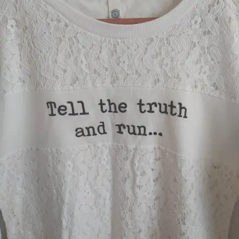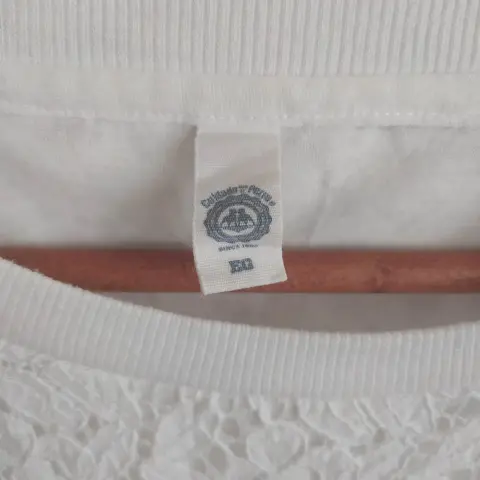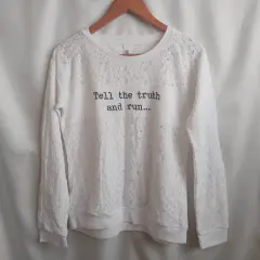 Sudadera blanca de encaje, las letras están bordadas. Medidas en la última foto. Como nueva, sin detalles