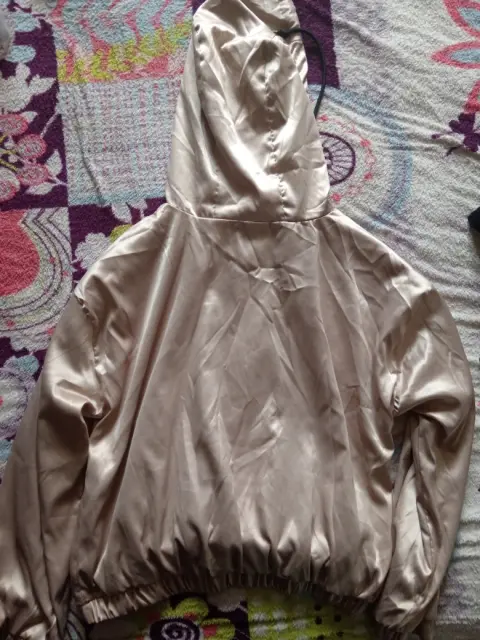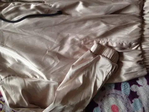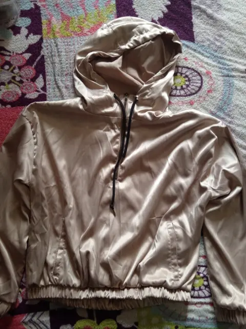 Sudadera ligera y brillante. Sudadera ligera, talla mediana, color nude brillos o, con resorte en cintura y mangas