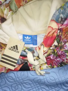 Sudadera con capucha para mujer, marca Adidas originals de patrón floral botánico, talla M.