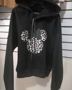 Sudadera Nacional. Sudadera manofactura nacional, en tono negro y estampado silueta de minnie, es unitalla, pero da a talla S