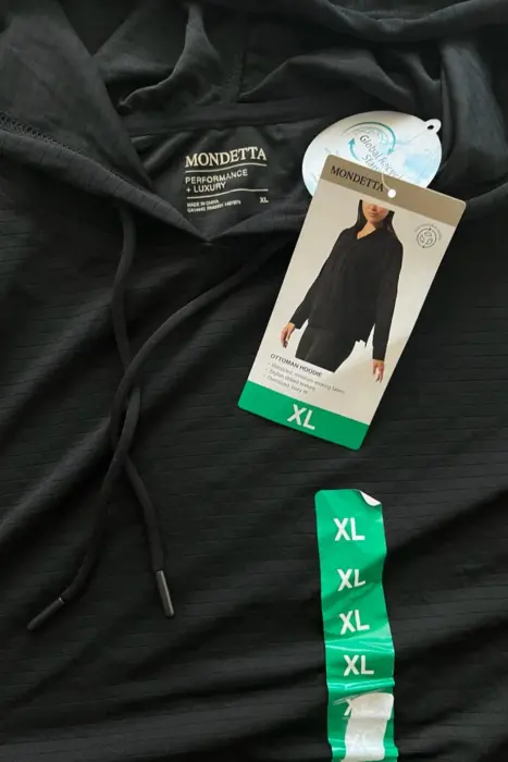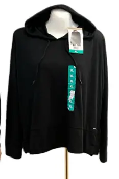 Sudadera negra con capucha 100 poliester, Ranuras laterales para facilitar el movimiento, Tejido de rendimiento que absorbe la humedadMedidas:Axila a axila: 85 cmLargo: 65 cmTalla