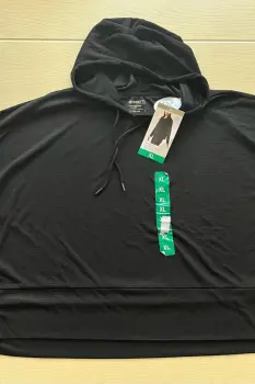 Sudadera negra con capucha. Sudadera negra con capucha 100 poliester, Ranuras laterales para facilitar el movimiento, Tejido de rendimiento que absorbe la humedadMedidas:Axila a axila: 85 cmLargo: 65 cmTalla