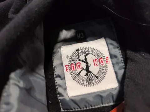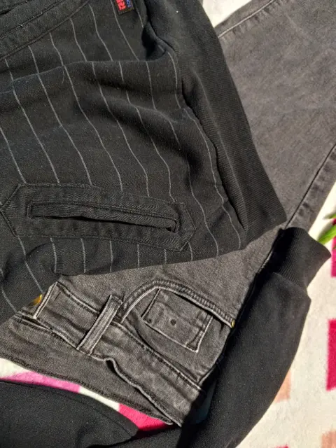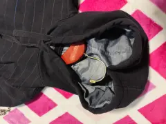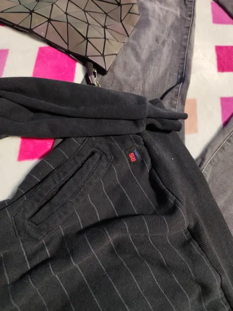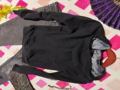Sudadera negra bolsa de canguro. Print líneas horizontales, colores neutro. Afelpada por dentro. Ligero stretch, Talla Ch, da a M. Con capucha (cintas para ajustar)