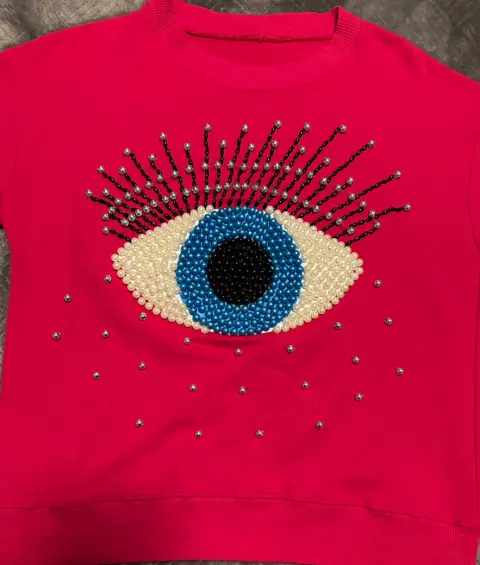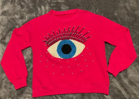 Sudadera ojo turco color rosa. Con bisutería cocida a mano, en la última foto pueden ver el cocidoBusto: 50 cmCintura: 48 cmLargo: 55 cm