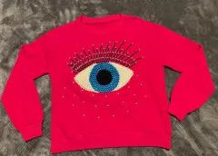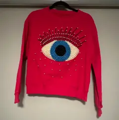 Sudadera ojo turco. Sudadera ojo turco color rosa. Con bisutería cocida a mano, en la última foto pueden ver el cocidoBusto: 50 cmCintura: 48 cmLargo: 55 cm
