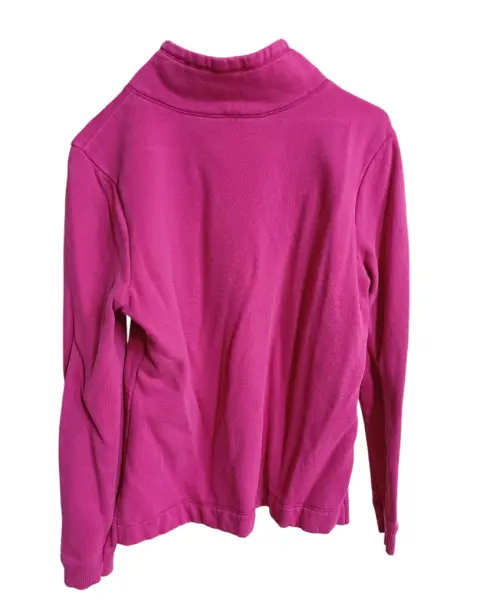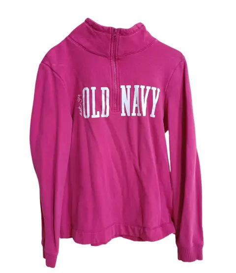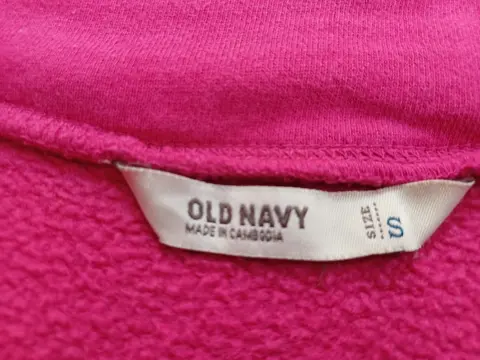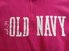 Sudadera marca Old Navy, color rosa fucsia, manga larga, con cierre del mismo color corto en la parte frontal, tiene detalle de la marca grande en color blanco en el frente. Talla chica (s), prácticamente nueva