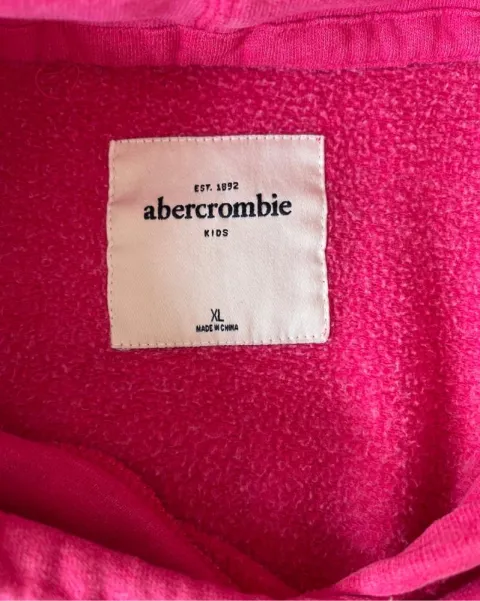 Sudadera rosa Abercrombie. Sudadera con capucha y bolsita de canguro al frente, talla: XL (niños) XS en adulto.Medidas: 36 cm de hombros, 46 cm de axila y 53.5 cm de largo.