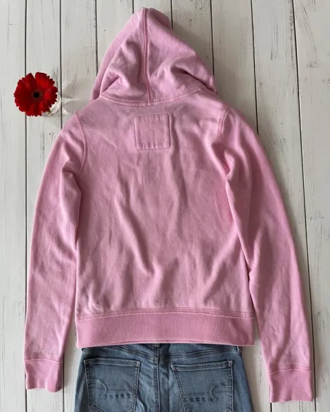 Sudadera rosa Abercrombie. Talla: XL (niños). Considero es XS, revisar medidas por favor, gracias!Medidas: 37 cm de hombros, 46 cm de axila y 54 cm de largo. En las fotos el color se muestra un poco más fuerte de lo que es.