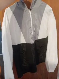 SUDADERA SHEIN MUY CÓMODA. SUDADERA DE HULE PARA EL AGUA COLOR BLANCA CON NEGRO