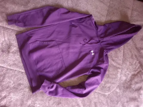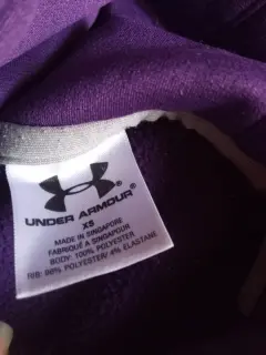 Sudadera Under Armour. Morada, con capucha y sin detalles, talla xs, pero sin problema puede quedar a s