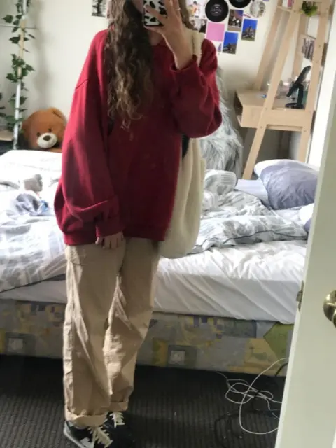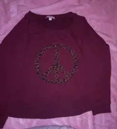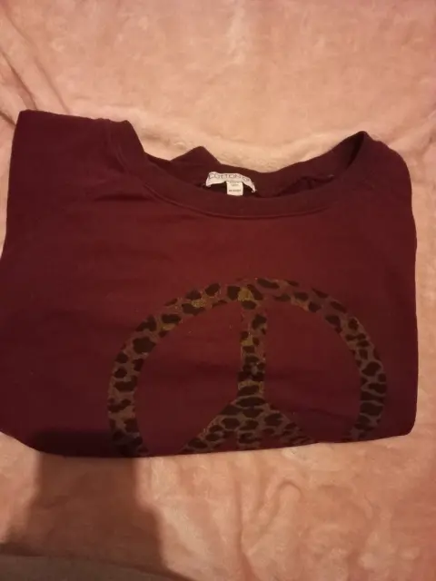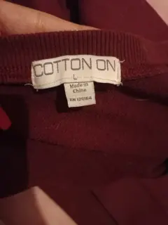 Sudadera vino. Talla L, estampada, viene algo amplia de enfrente. Ideal para un outfit casual.