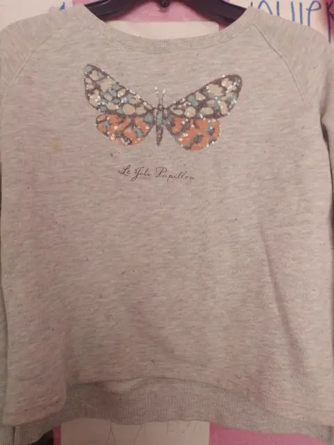 Sueter mariposa de lentejuelas. Es un suéter demasiado lindo, con una que otra macha pero esta en buen estado, es de talla 13/14